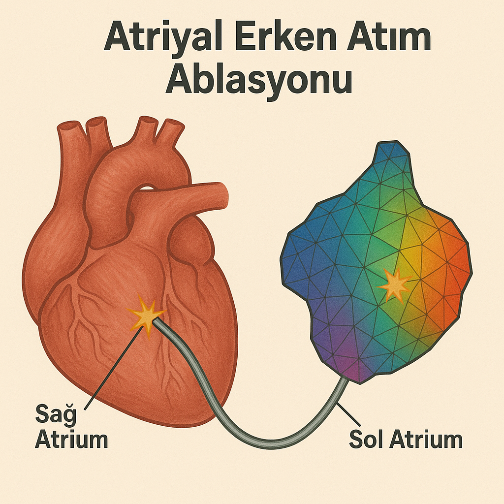 Atriyal erken atım ablasyonu, sık ve rahatsız edici çarpıntıların kalıcı tedavisinde etkili bir yöntemdir. Özellikle 3 boyutlu haritalama teknolojisi sayesinde hem sağ hem de sol atrium kaynaklı odaklar güvenle bulunarak tedavi edilebilir.